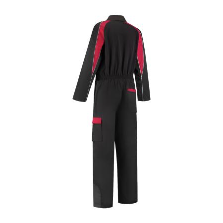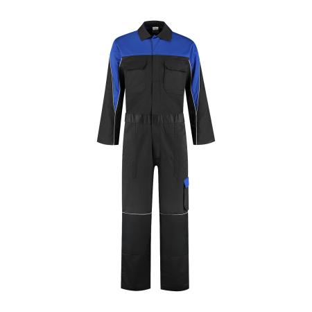 Overall polyester/katoen, 65% gerecycled polyester/35% katoen, 260 grams/m2, met 4-way stretch rugpand, cordura kniezakken, zwarte reflectie onderkant been, contrast doek, verdekte drukknoopsluiting met rits, dijbeenzak, reflectie piping, elastiek in de taille, 2 borstzakken met klep, 2 zijzakken, 2 intasten, achterzak en duimstokzak.